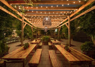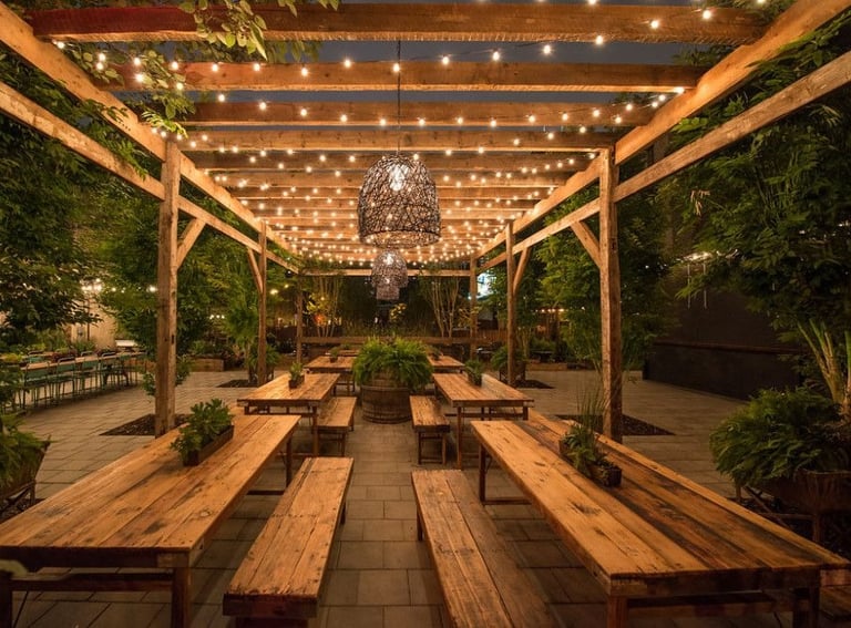 Scenic outdoor dining with fresh air, greenery and a wide menu of flavorful dishes under the stars.